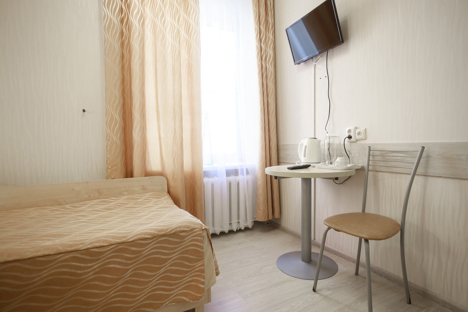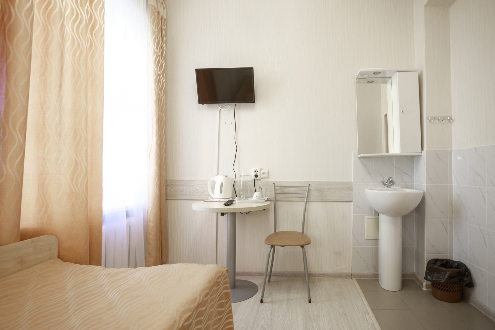 Корпус №1 В номере есть: 1 односпальная кровать, телевизор, Интернет, отопление, холодильник, раковина, электрочайник. Удобства на этаже.