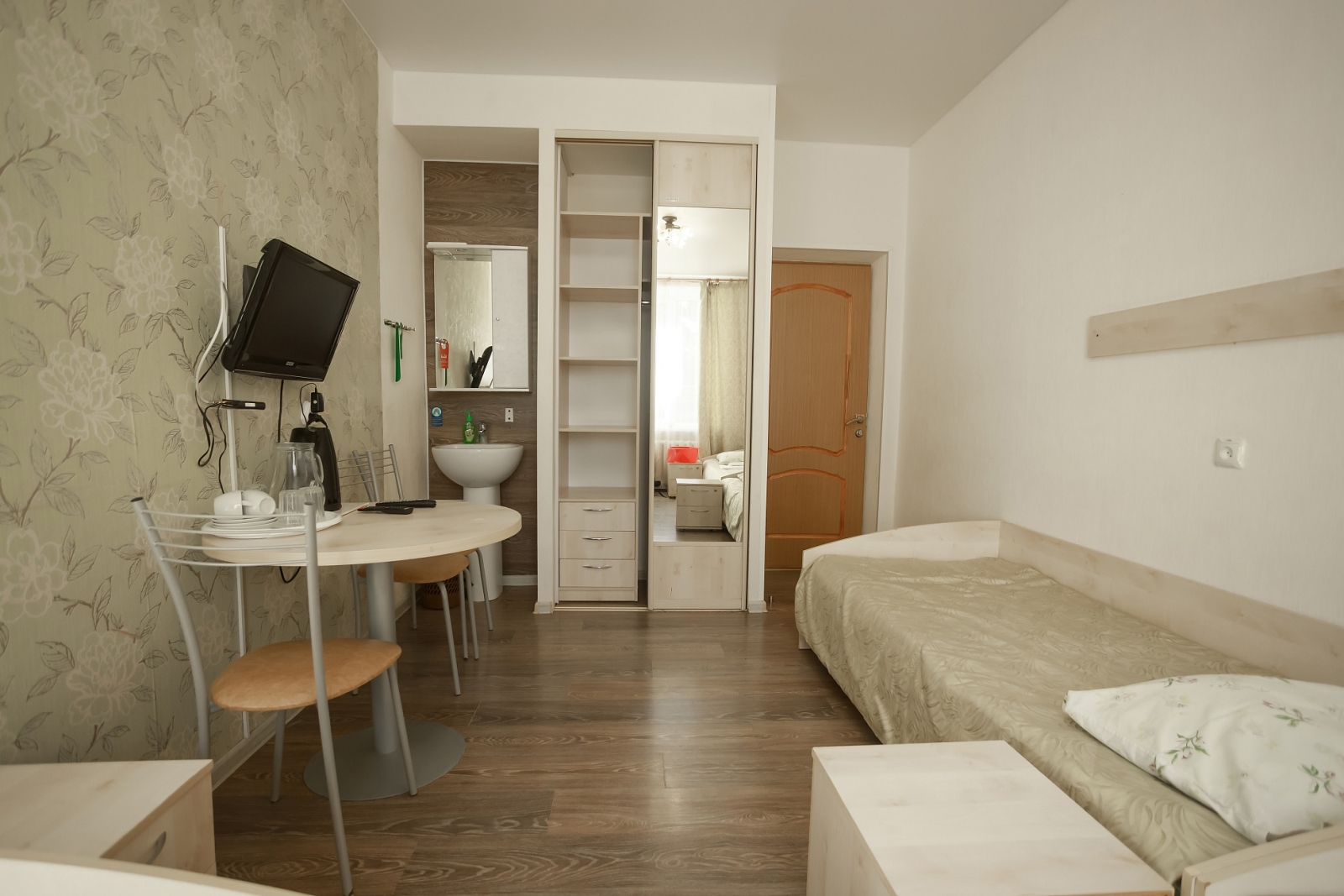 Корпус №1 В номере: 3 односпальные кровати, телевизор, Интернет, отопление, холодильник, раковина, электрочайник. Удобства на этаже.