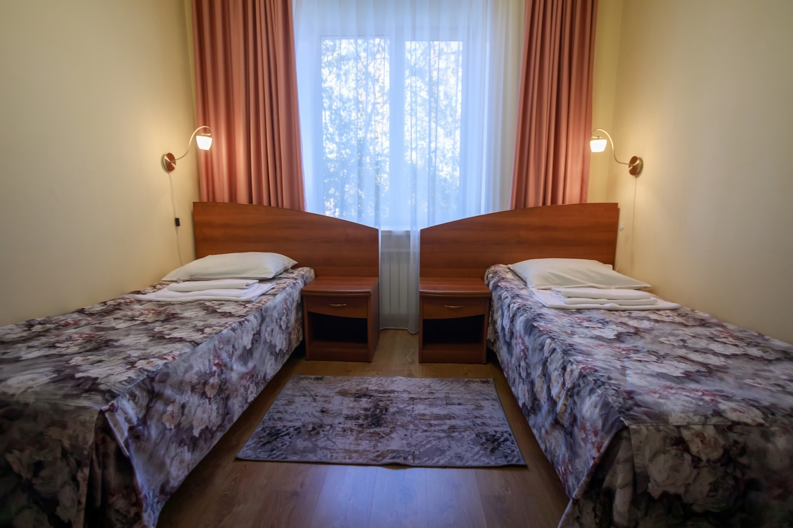 Корпус №2 В номере есть: 2 односпальные кровати, диван, телевизор, Интернет, отопление, холодильник, туалет, душ/ванная, электрочайник.